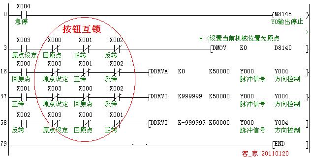 如下圖,不用原點回歸指令[ZRN],而用絕對位置指令[DRVA]也能使Y0回歸到所設(shè)定的原點。編程手冊中好像是沒有類似此用法的介紹哦^_^ ,至于原理,玩過步進、伺服馬達定位控制的你知道的。